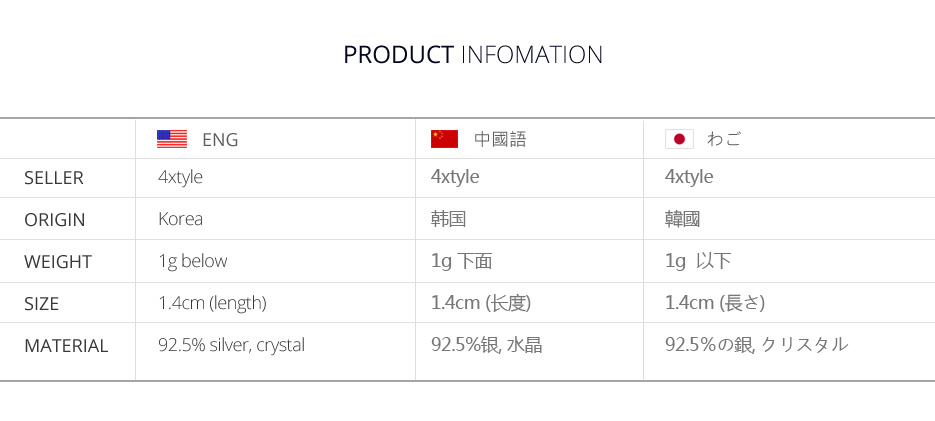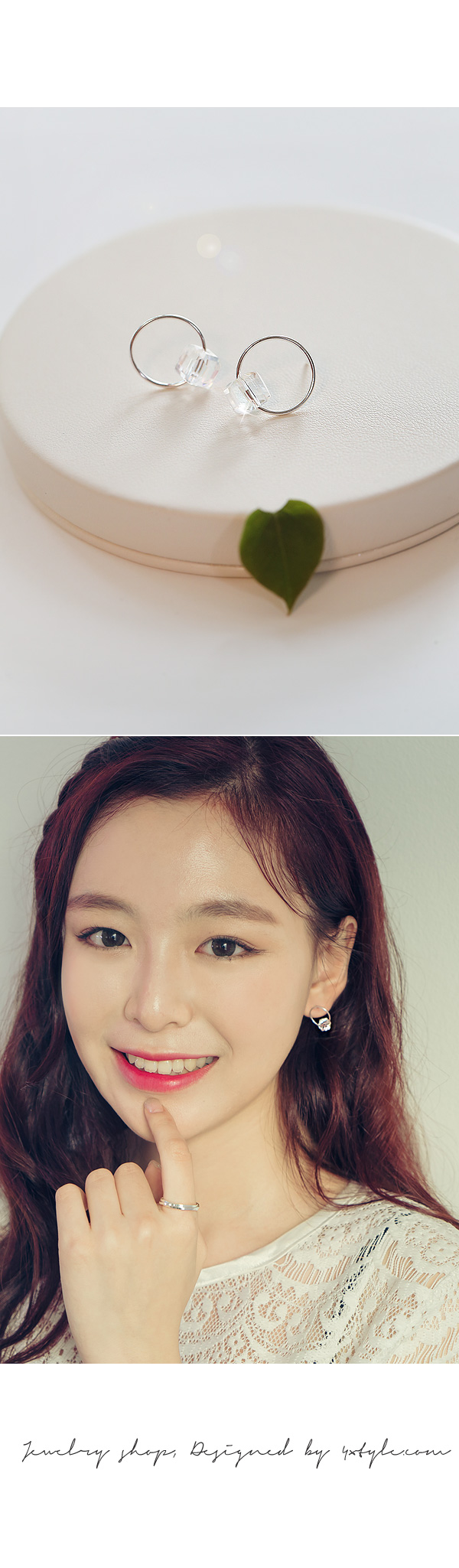 섬세한 컷팅의 눈부신 사각 크리스탈 소재.전체 92.5% Silver 제품으로 알러지 안심하세요:)