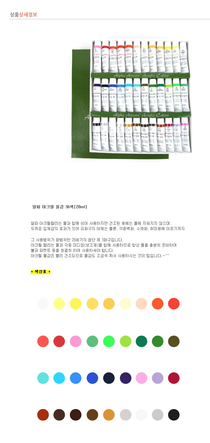 취미/수집 | 알파 다용도 실버아크릴물감(36색)