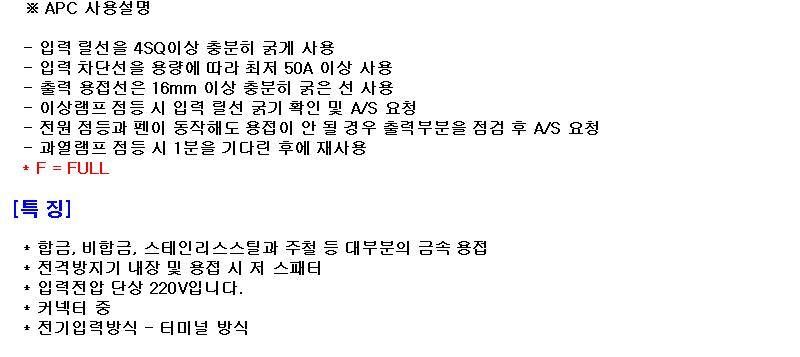 | 모델명 | 사용율 | 정격입력(KVA) | 사용용접봉(Ø) | 가로x세로x높이(mm)/중량(kg) | 출고단위 | 재고 (대구/서울/부산) | |