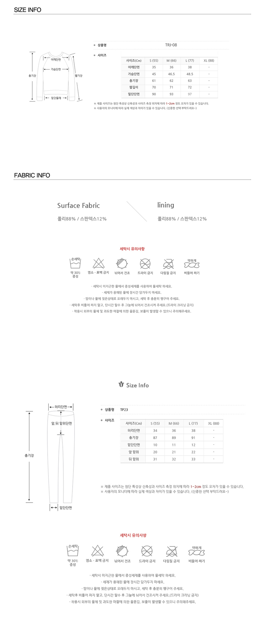 ※ 상.하의 폭을 여유 있게 한 디자인으로 몸에 달라붙지 않고