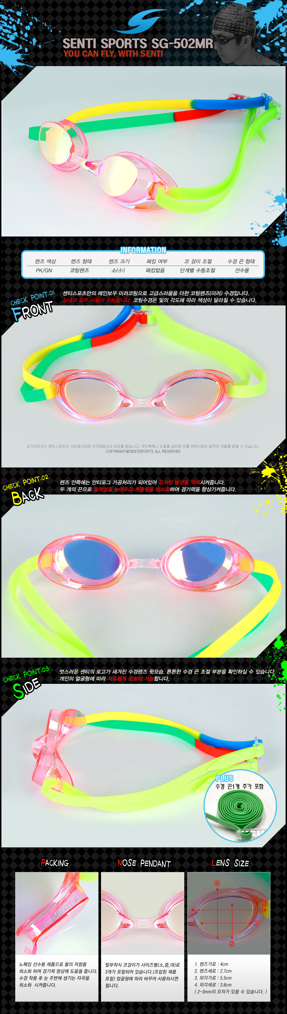 스포츠/레저 | SDM SG-502MR-PK/GN 선수용 미러코팅 노패킹 수경