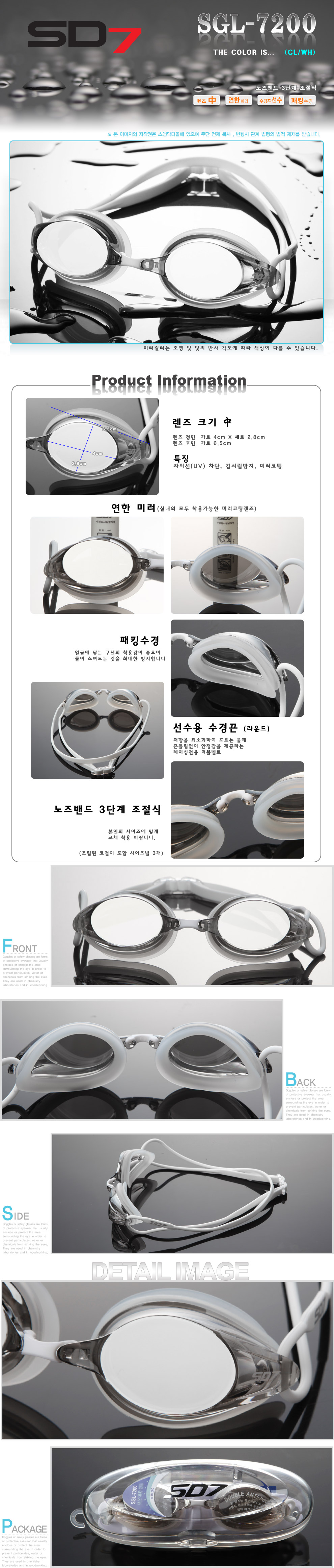 스포츠/레저 | SDM SGL-7200-CLWH SD7 선수용 수경 수영용품