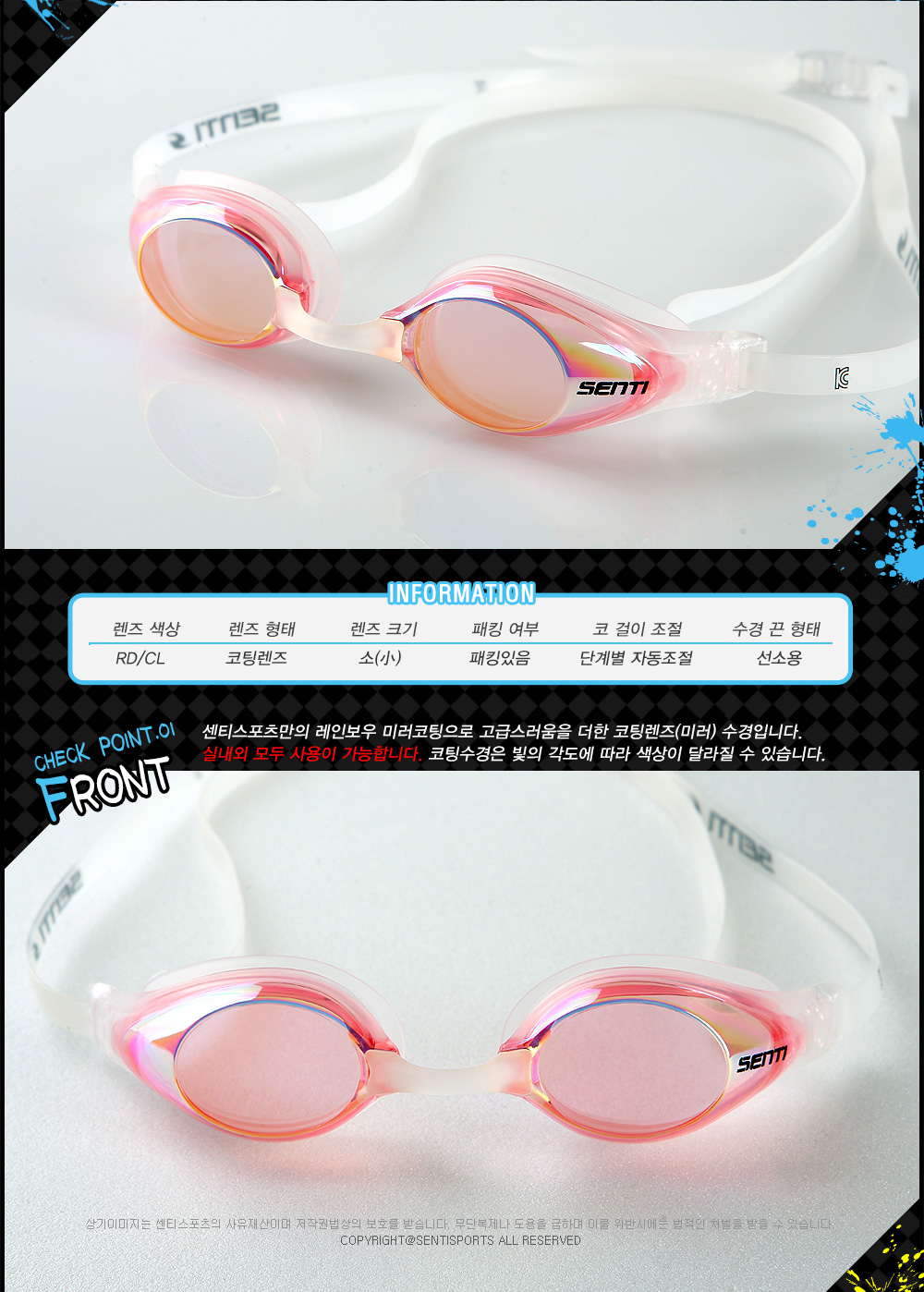 스포츠/레저 | SDM SG-401MR RD/CL PINK 센티 선수용 미러코팅 수경