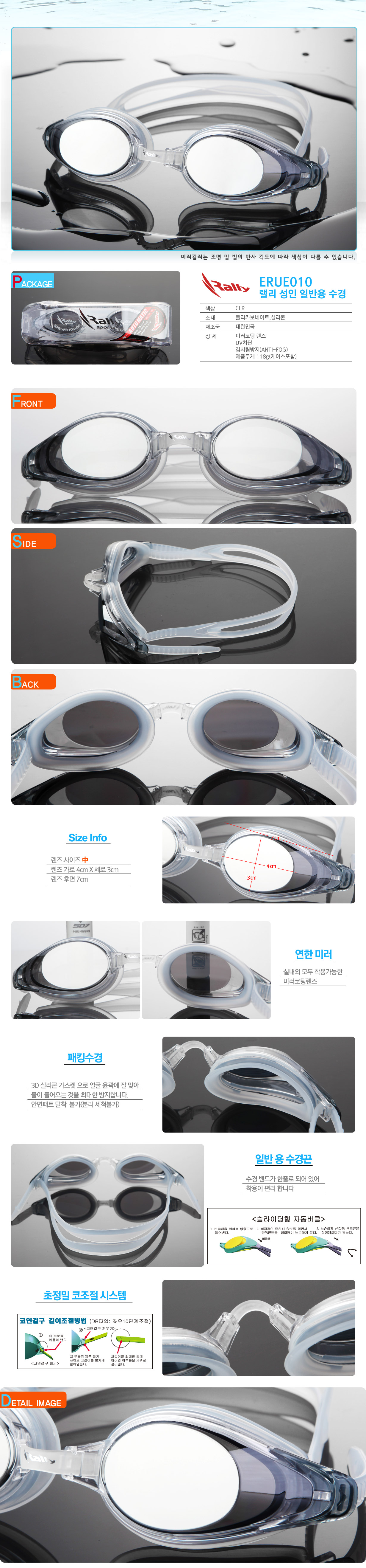 스포츠/레저 | SDM ERUE010-CLR 랠리 수경 자동밴드조절 수영용품