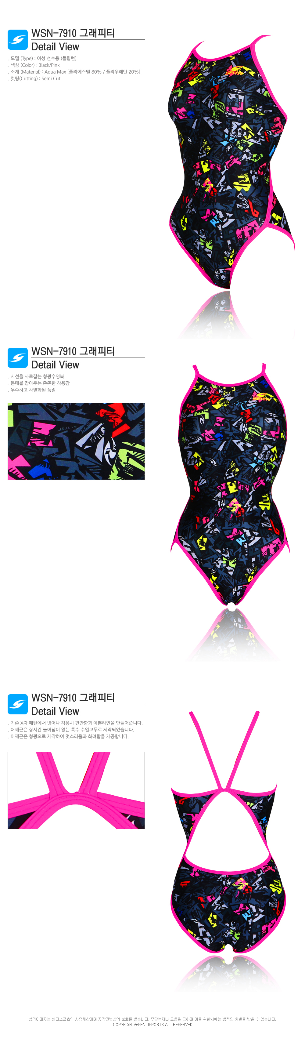 | 세탁방법및 주의사항 | 수영후 변색 될 우려가 있으니 사용 후 맑은 물로 꼭 헹구어 주세요. 중성세제를 사용하여 단독 손세탁 바랍니다 오일사용금지. 다른옷과 함께 젖은채 보관시 이염될수 있으니 단독보관하세요. |